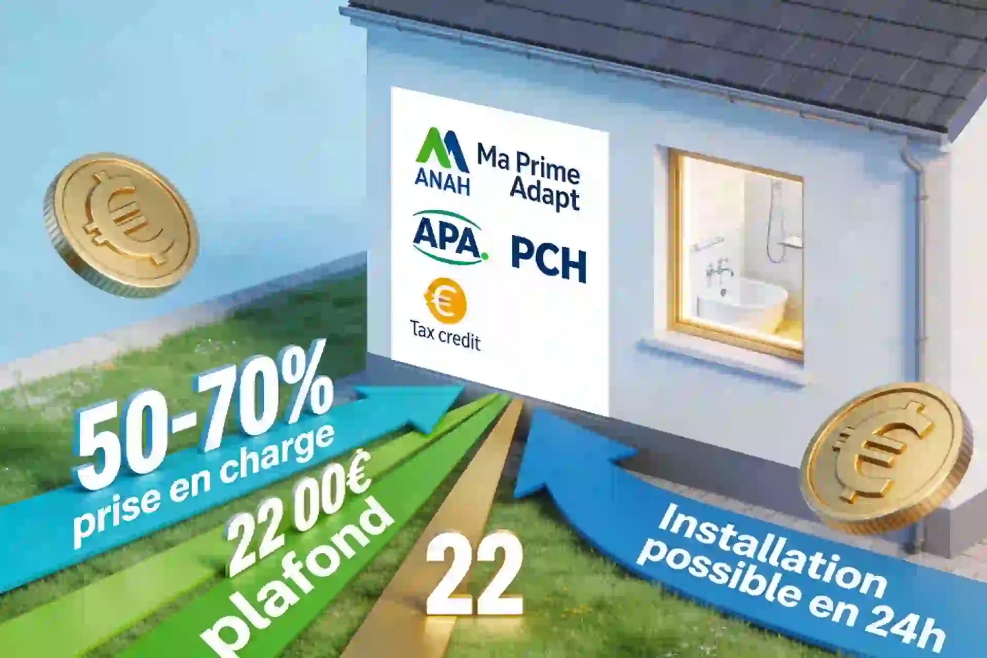 Selon ton âge, ton niveau d’autonomie, ta situation (propriétaire/locataire) et tes revenus, plusieurs aides peuvent réduire le reste à charge : dispositifs d’adaptation du logement, aides liées à la perte d’autonomie, aides liées au handicap, ou soutiens de certaines caisses de retraite. Chaque dossier a ses critères, ses plafonds et ses justificatifs, et il est fréquent de devoir constituer un dossier avant le démarrage des travaux pour rester éligible. Le plus efficace est de faire un point sur ta situation et de construire un devis conforme aux exigences des financeurs.